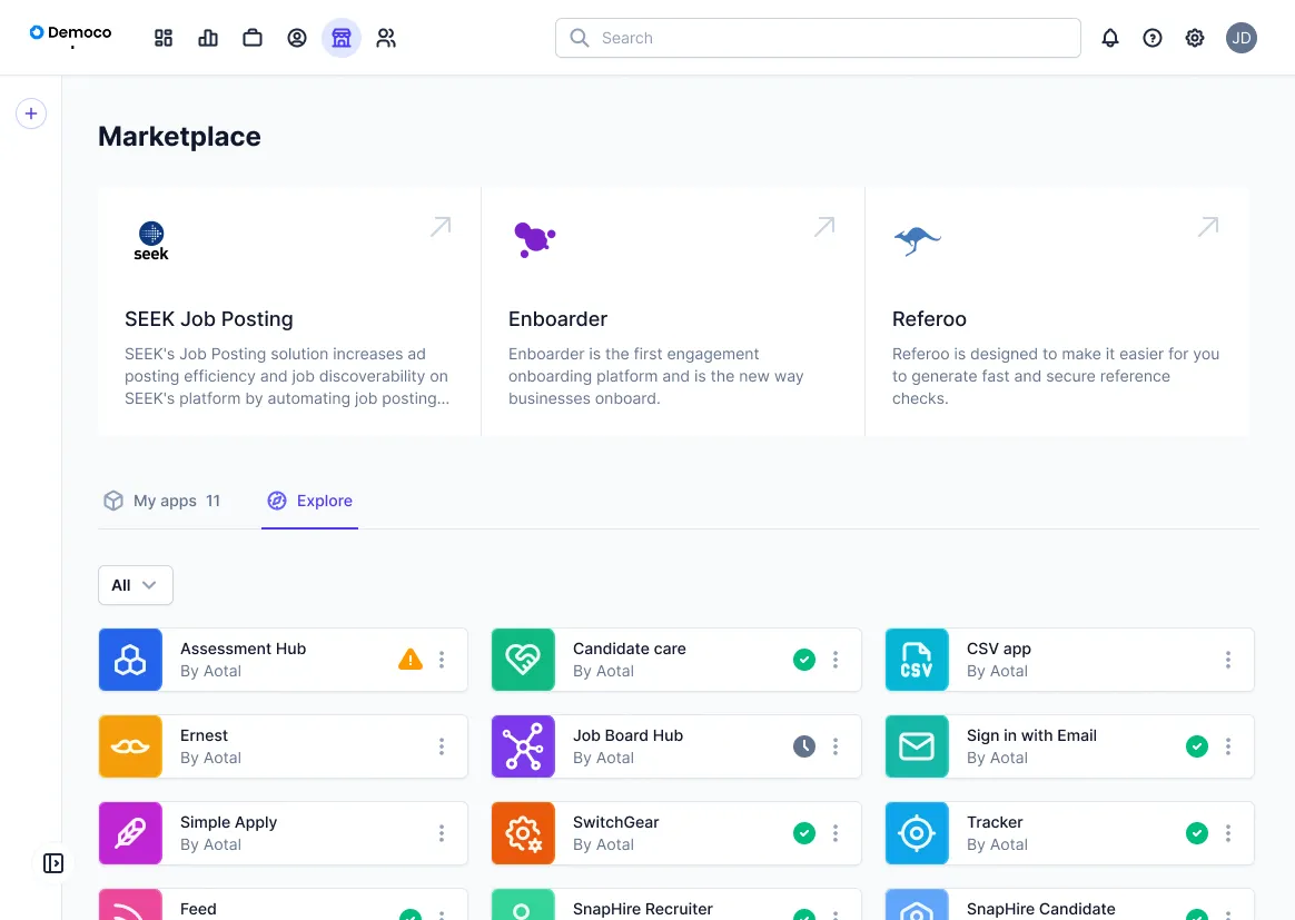 SnapHire integrates with leading platforms across the HR ecosystem. If you’re interested in becoming a Marketplace partner, let’s talk.